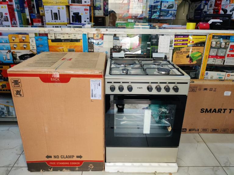 *Von Cooker 60cmX60cm 3 Gas + 1 Electric RAPID plate, Jet Valve burner with Flame Failure Safety 🔥, 5 Function Electric Oven with TURBO FAN.* _Model: VCF663151FSY INOX GREY_ *@43,000‼️🔥* With gas censer
