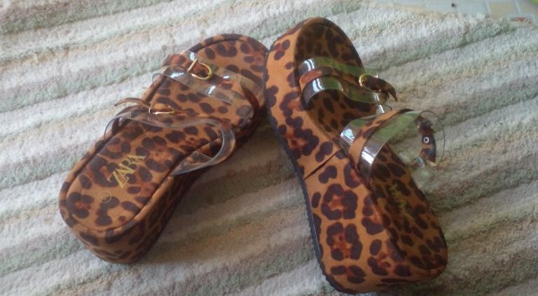 Zara Leopard Print Wedge Sandals with Transparent Straps -Size 37